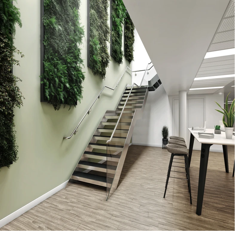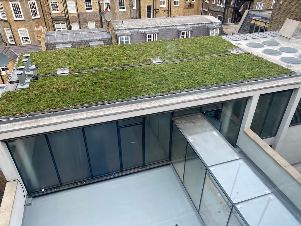 Externally, sustainable features were added. A new green roof sits above the second-floor rear offices, while an additional terrace provides outdoor space on the existing green roof. These enhancements support both biodiversity and user wellbeing.