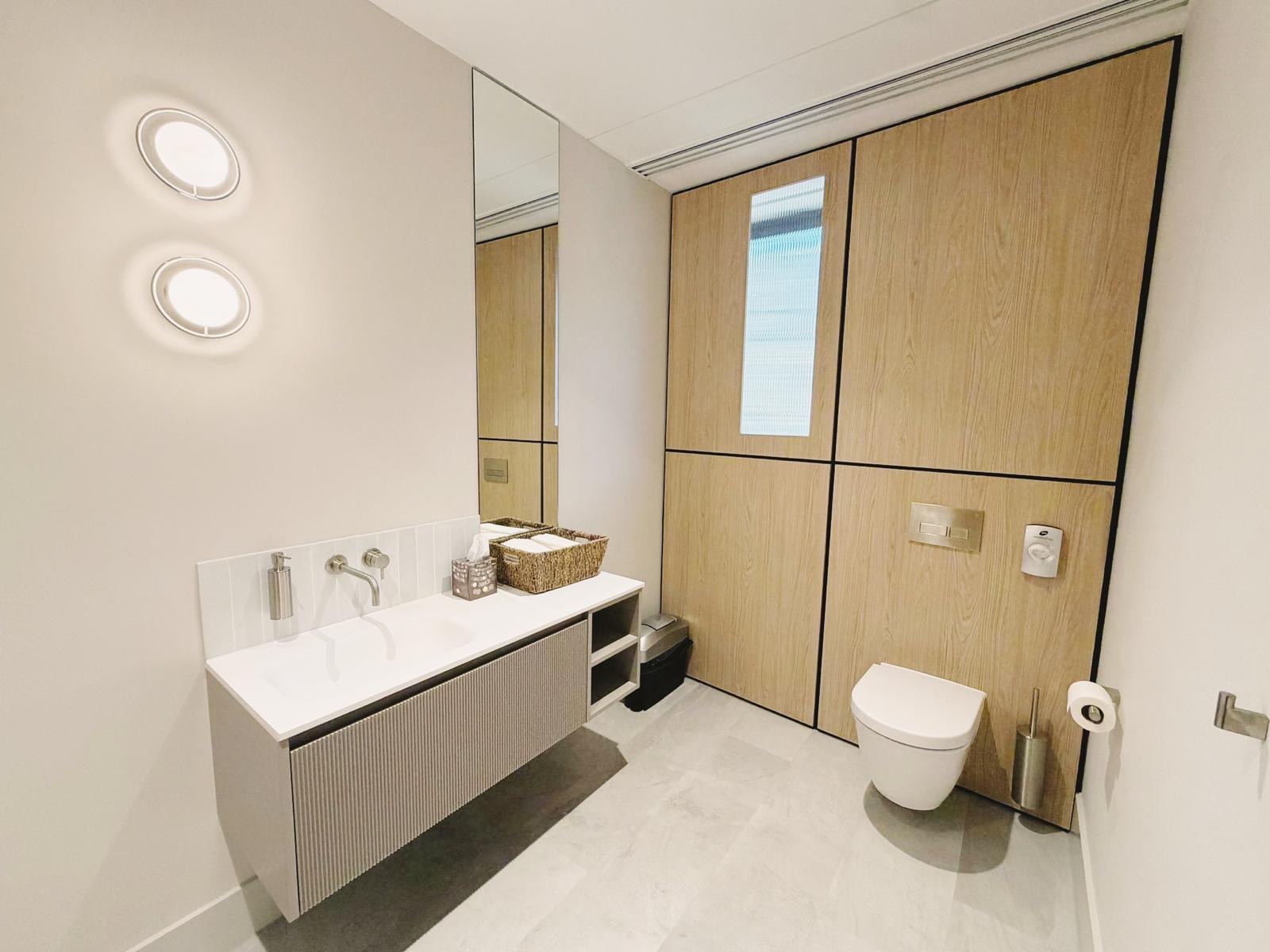 The project also included the construction of two new WC facilities. At the same time, the team refurbished the existing amenities. They selected durable finishes and modern fittings to improve longevity and simplify maintenance. Consequently, the sanitary areas now meet current standards and align with the wider office design.