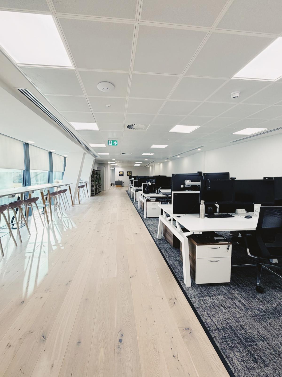 Next, the team upgraded the building services. They adapted the mechanical and electrical systems to suit the revised layout. In addition, they adjusted the air conditioning and electrical installations to improve comfort and efficiency. These improvements ensure reliable day-to-day operation across the workspace.
