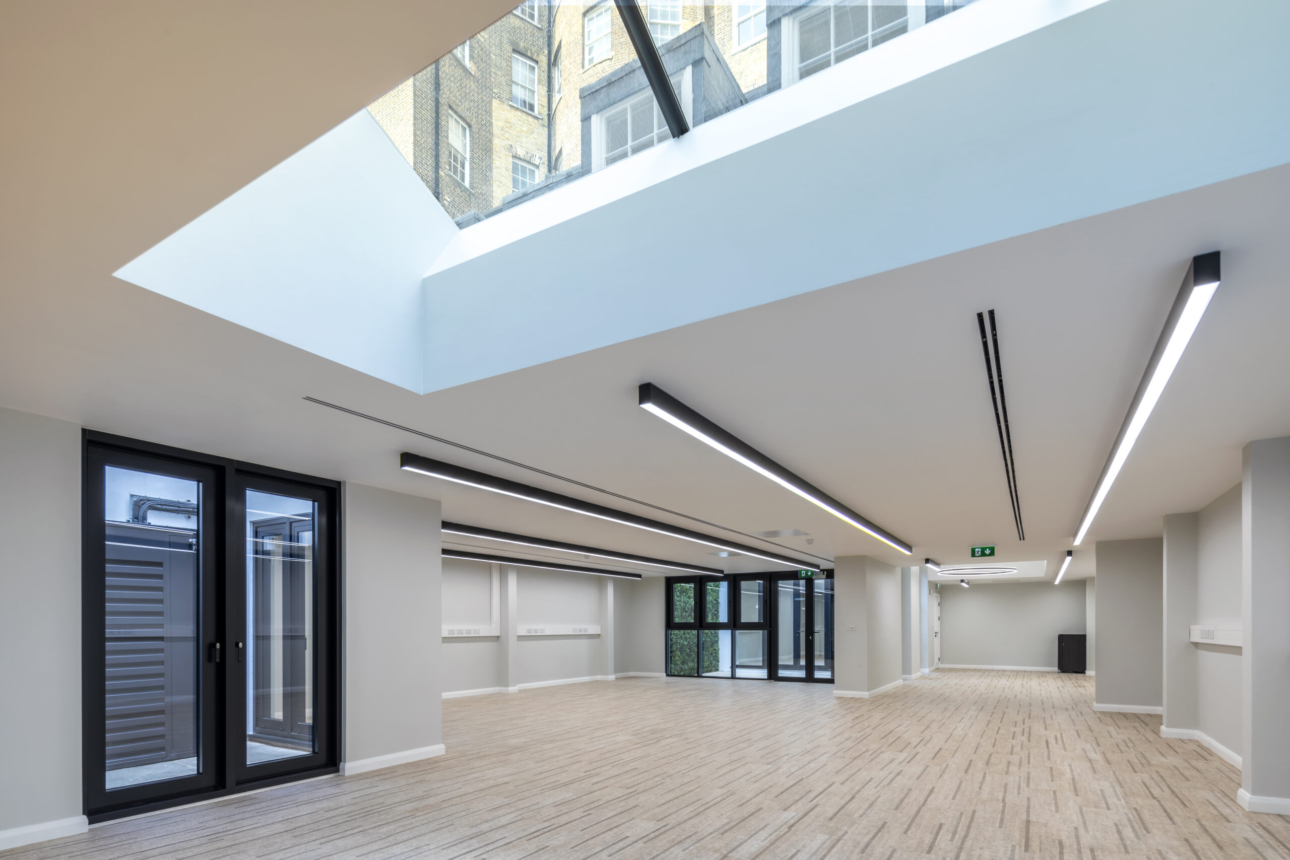 The works included sensitive structural alterations, installation of new WC facilities, and a tea point, alongside upgrades to mechanical and electrical systems. In front-of-house areas, restoration preserved the Georgian period character. In addition, a simplified layout, light neutral finishes, and carefully considered lighting enhanced the sense of space and openness.