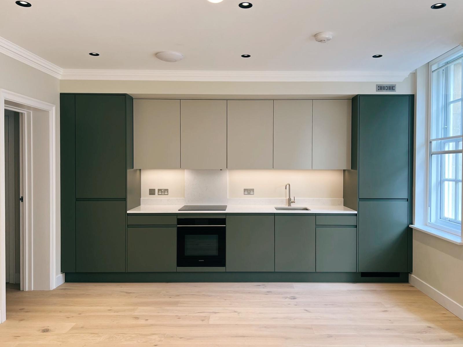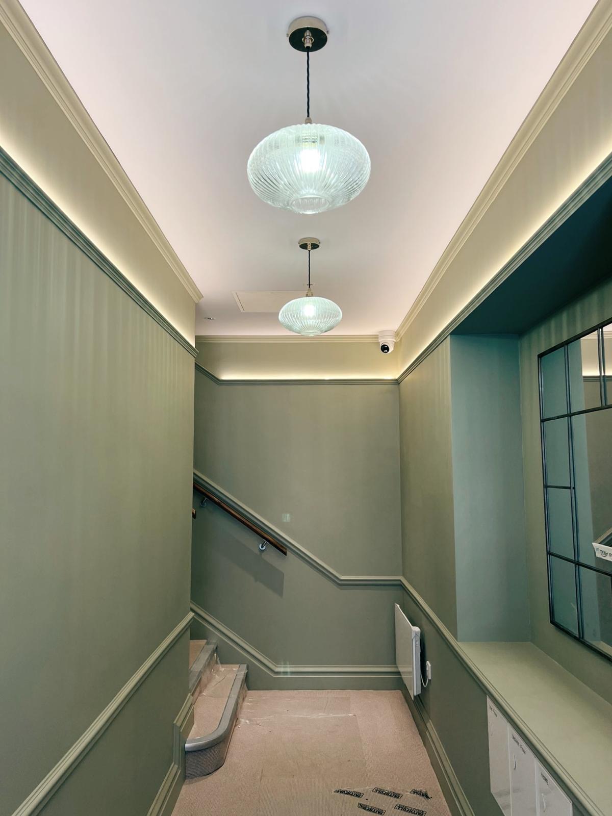 Once the essential services were complete, attention turned to the internal fit-out. The team installed new kitchens, bathrooms, fixtures, and bespoke finishes. Fire-stopping measures were applied throughout the building to ensure compliance with regulations. Finally, full redecoration gave the interiors a clean, high-quality finish.